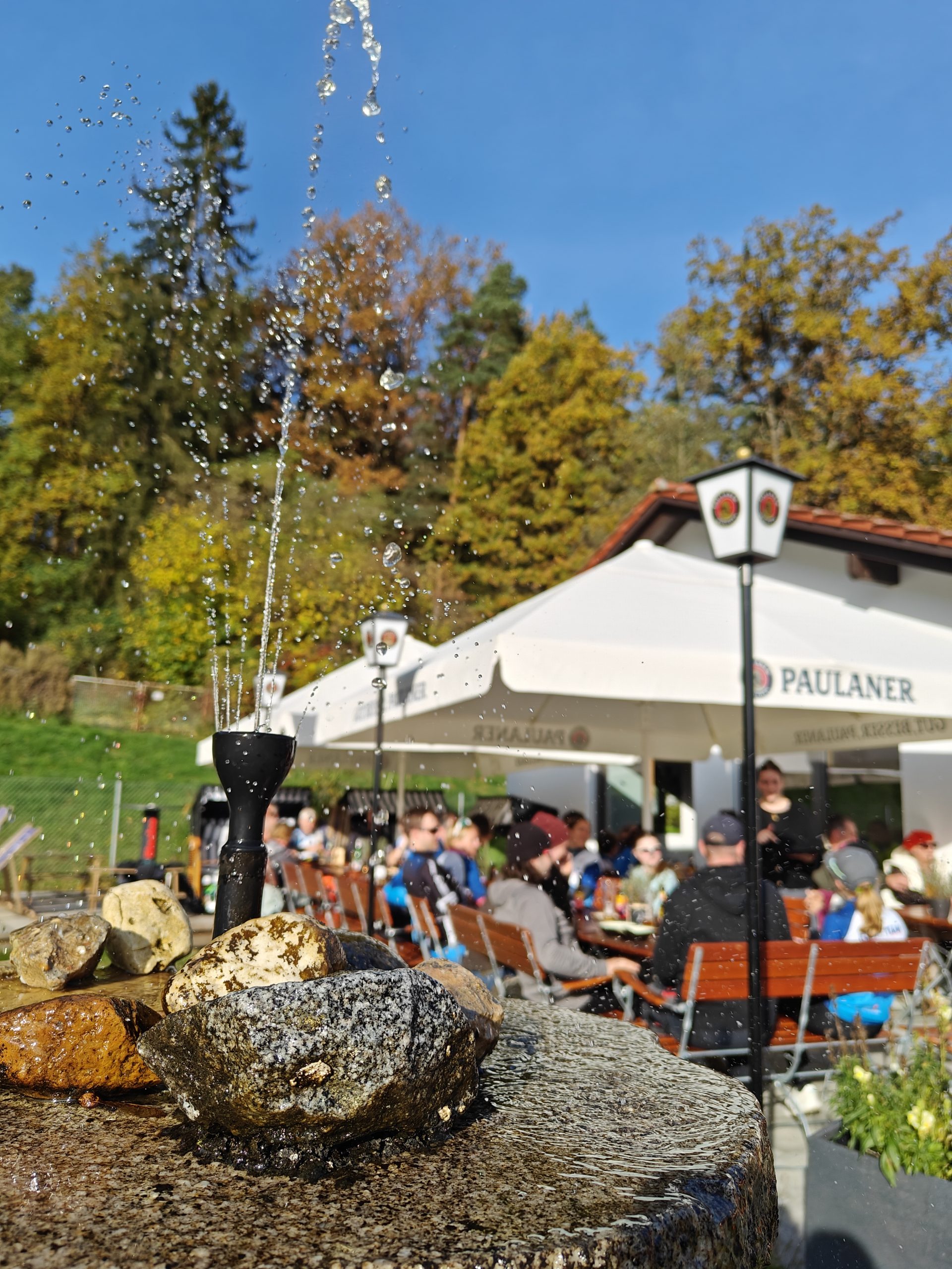 Genießt erfrischende Getränke und köstliche Gerichte in unserem schönen Biergarten, der mit seinem frischen Grün und einer großen Rasenfläche mit Liegestühlen und Sitzbänken (auch mit ausreichend Schattenplätzen) zum Verweilen einlädt.
